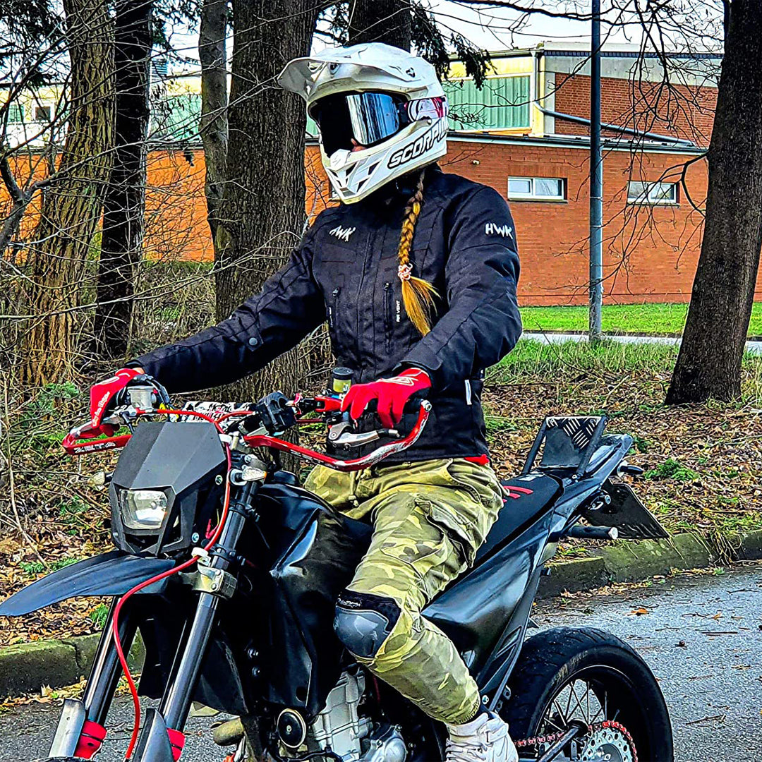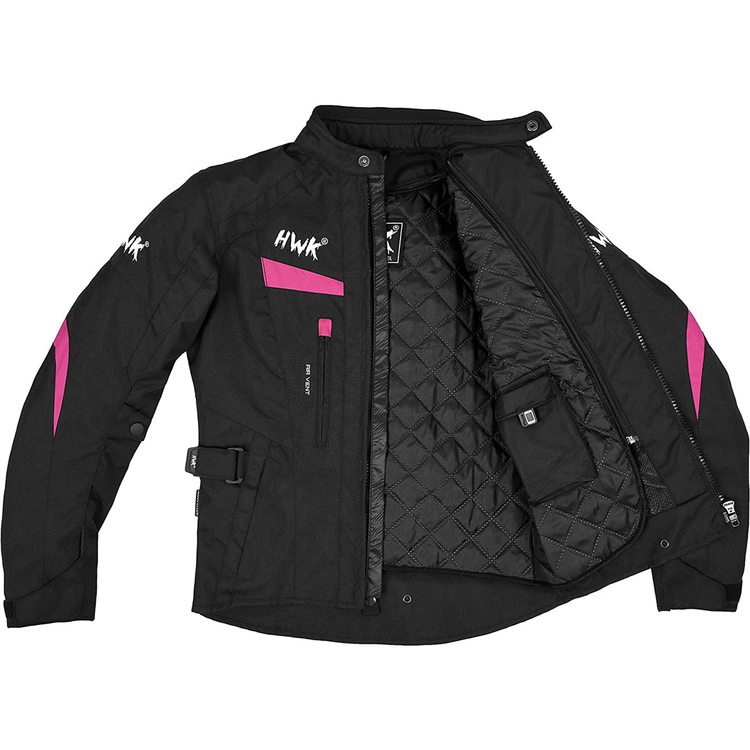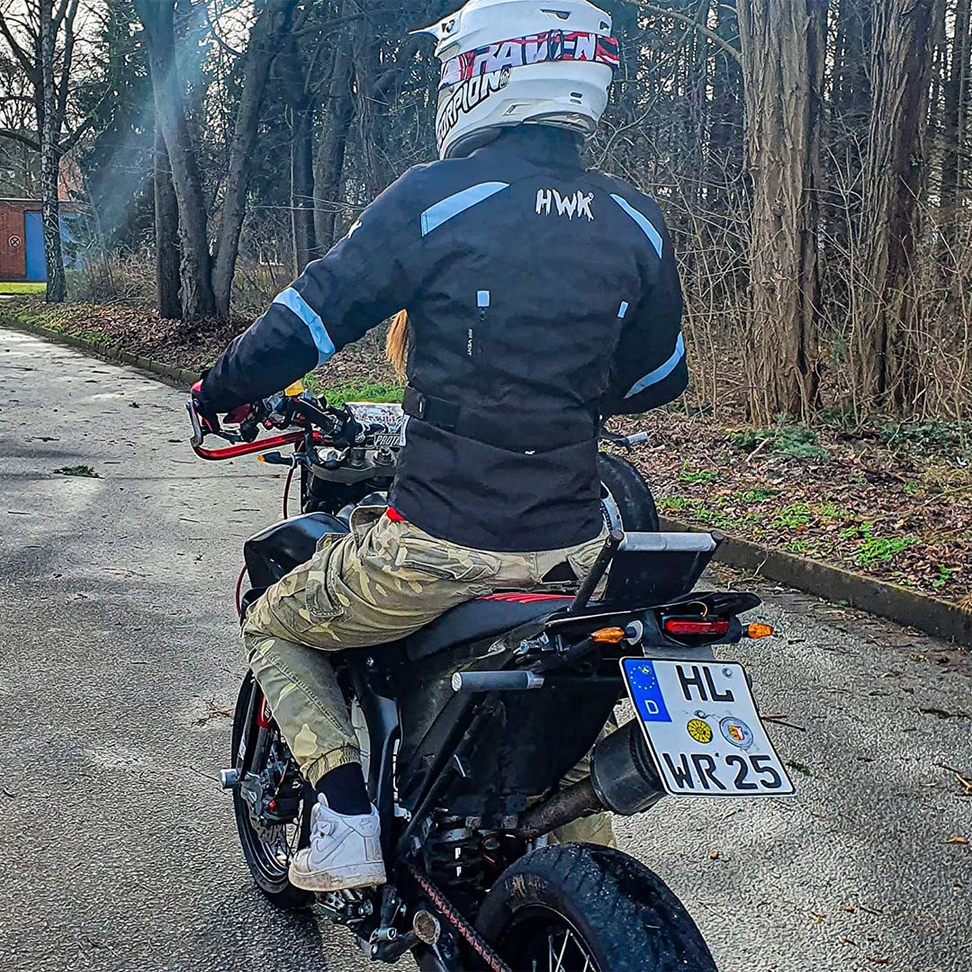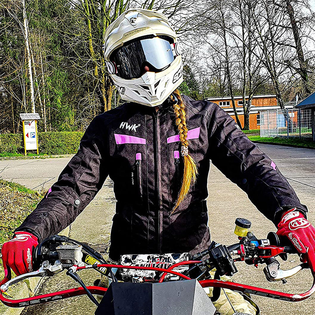 The HWK Moto Women’s Stella Jacket is cut to form. Order in all black, or with blue or pink accents. With a flattering tailored fit and all the essential safety and function features, you’ll be ready to ride with the big girls in the 600D Cordura HWK Stella jacket.