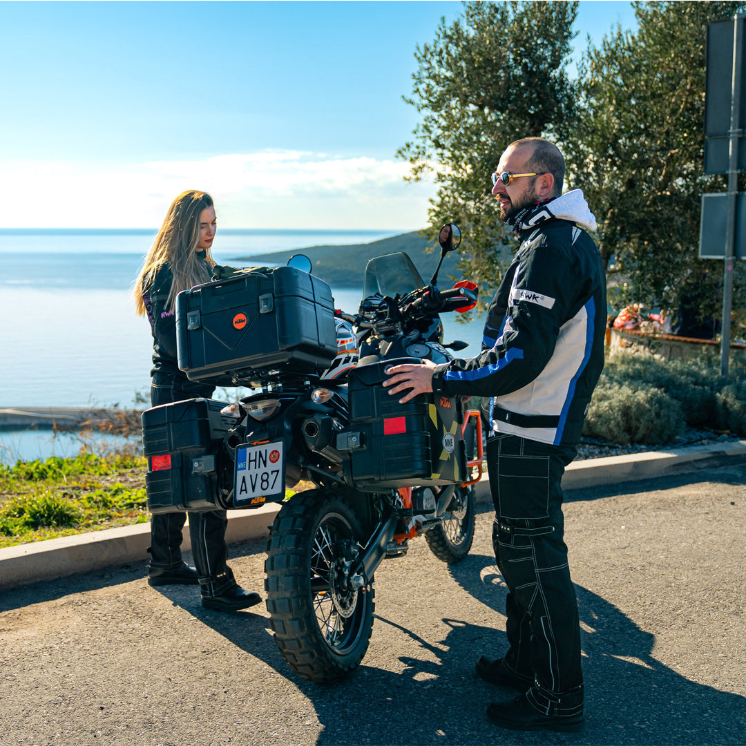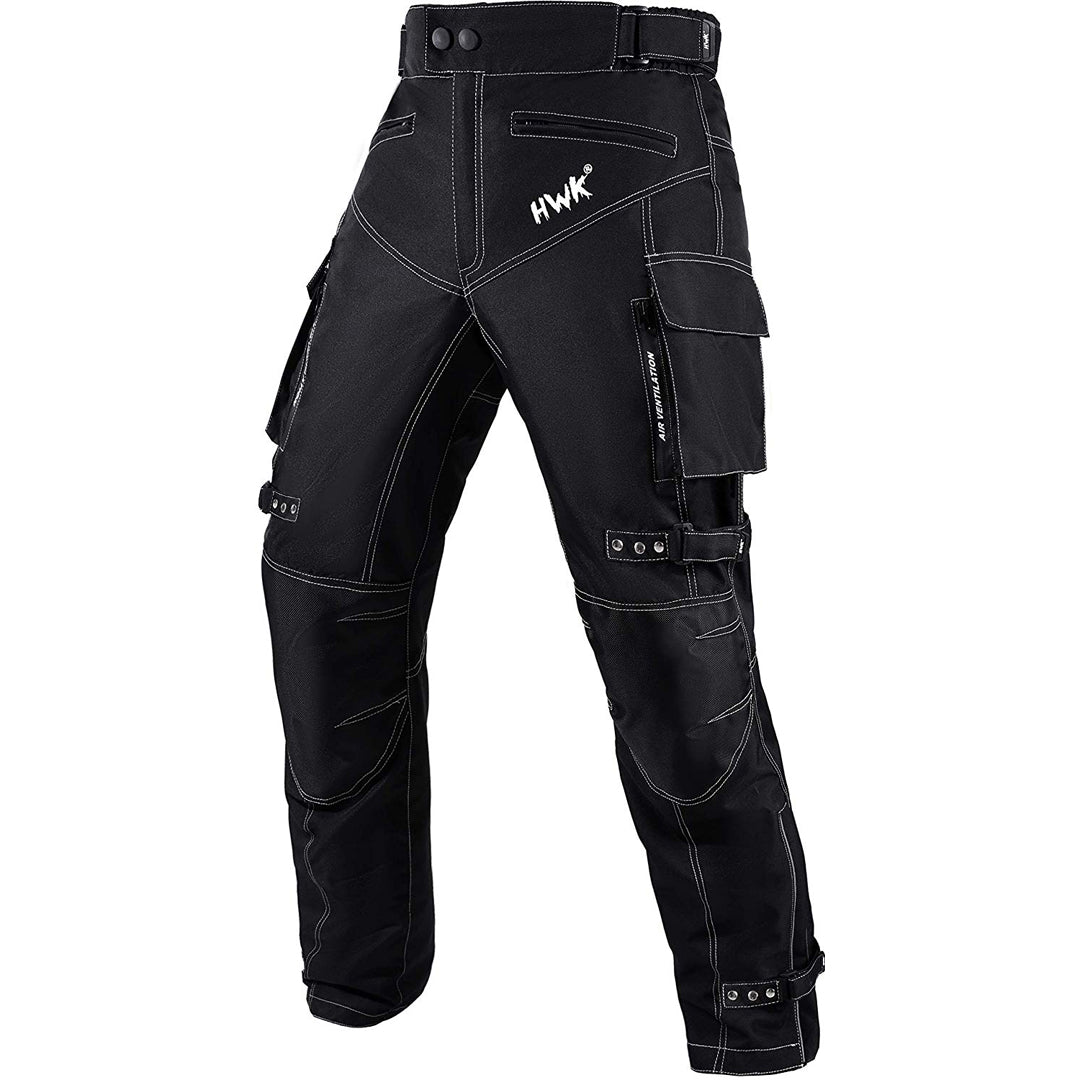 The HWK Moto Pants have won the HWK brand a dedicated following since our founding. One of our original products, the HWK Motorcycle Pants continue to be a best-seller. Equipped with removable CE armor and made from tough 600D Cordura fabric with a wind and water resistant liner, these classic black textile pants with reflective logos and piping keep you safe, warm, and dry.